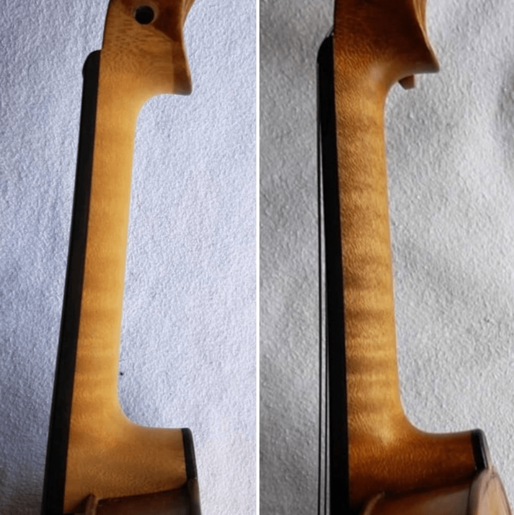 Violin neck graft from a little while ago. When the staining has gone well, the retouch afterwards is so much easier. If you’re interested in the process, have a look at the Online Course page.