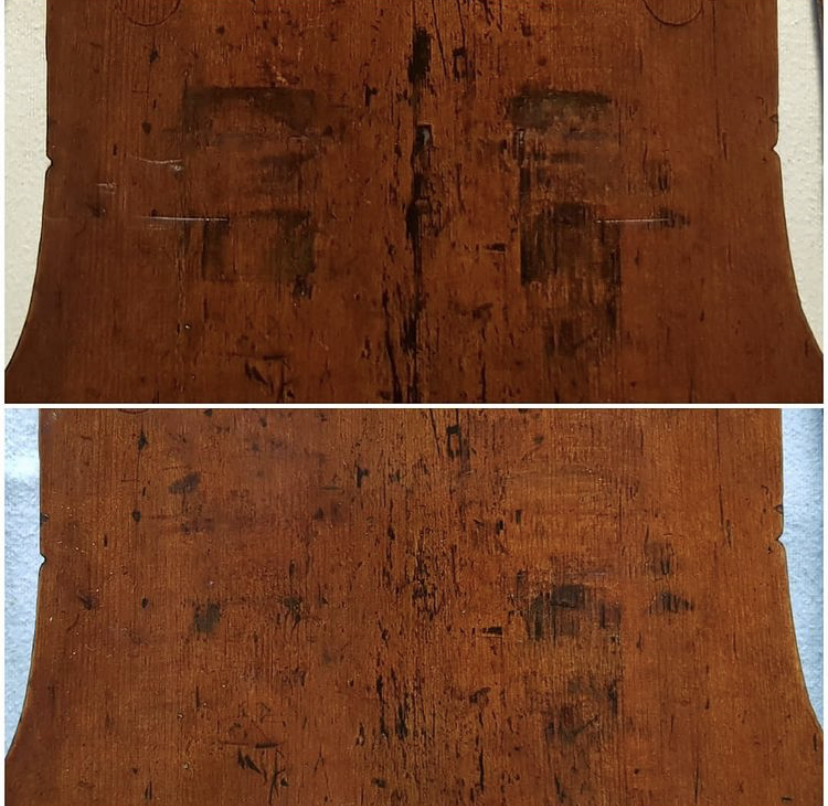 4. After a couple or more days, I scrape the Deft flat and then replicate the texture either side of it with my scraper (scraping along grain lines or craquelure for example)