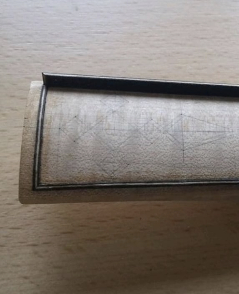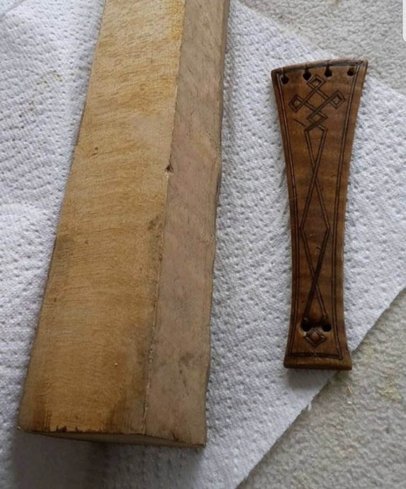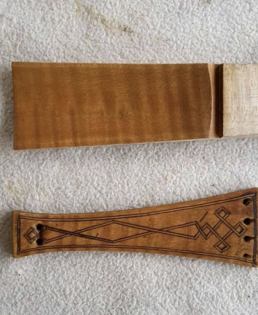 Inlaid violin baroque fingerboard to go with an original tailpiece. I rarely do inlays, so really enjoyed this one. Tested the colouring underneath first.