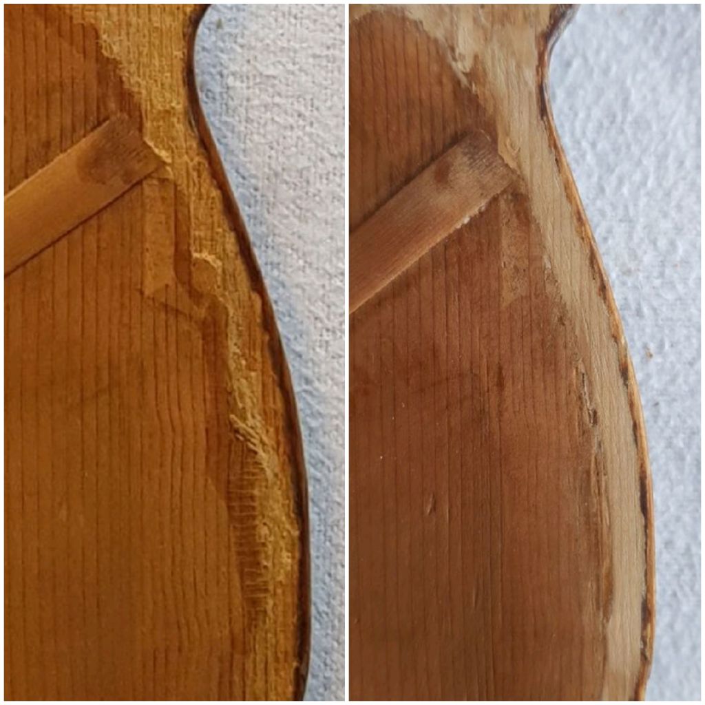 It’s always a difficult decision how to best secure the gluing edges of a front using either filler or wood, depending on how badly the gluing surface has been damaged.