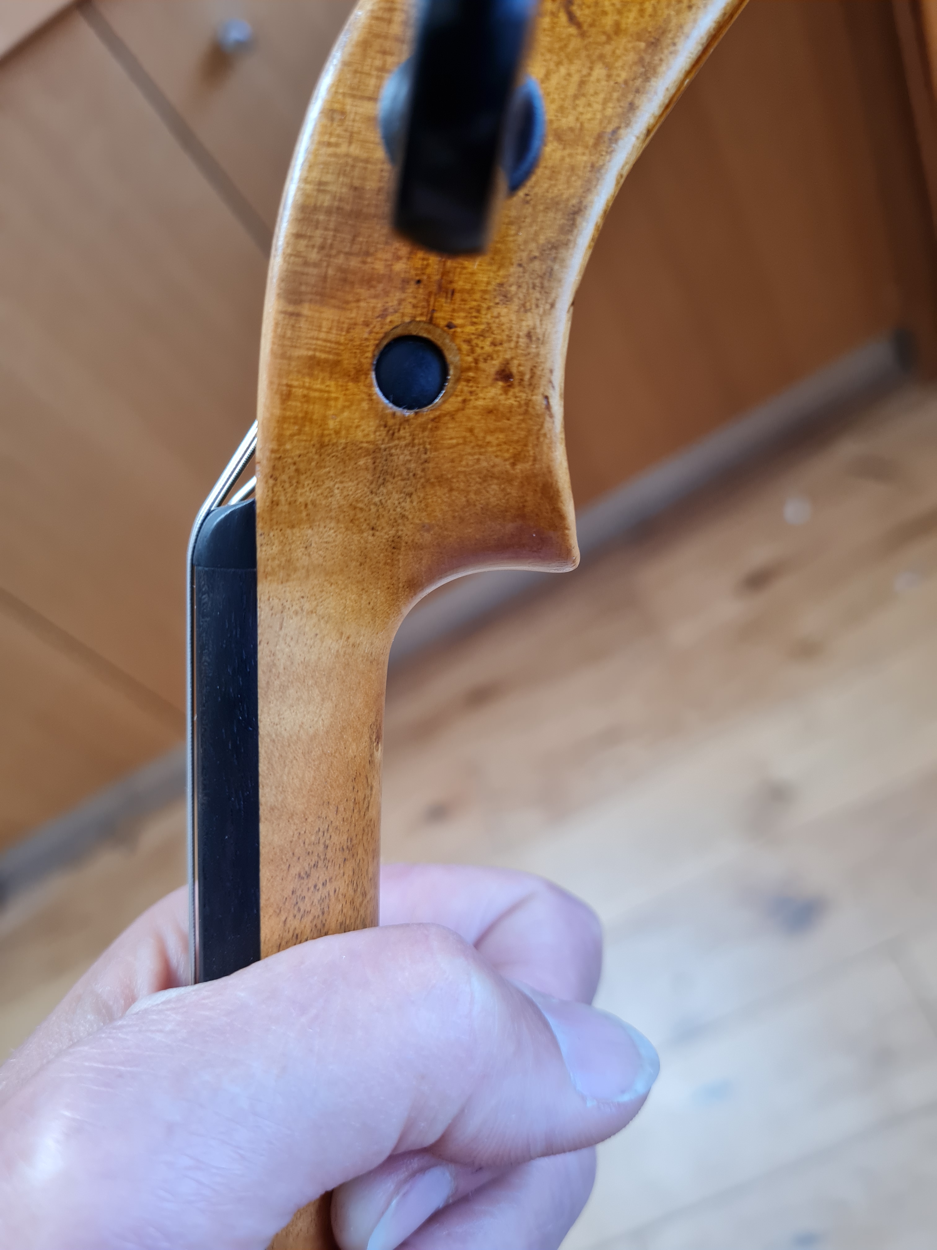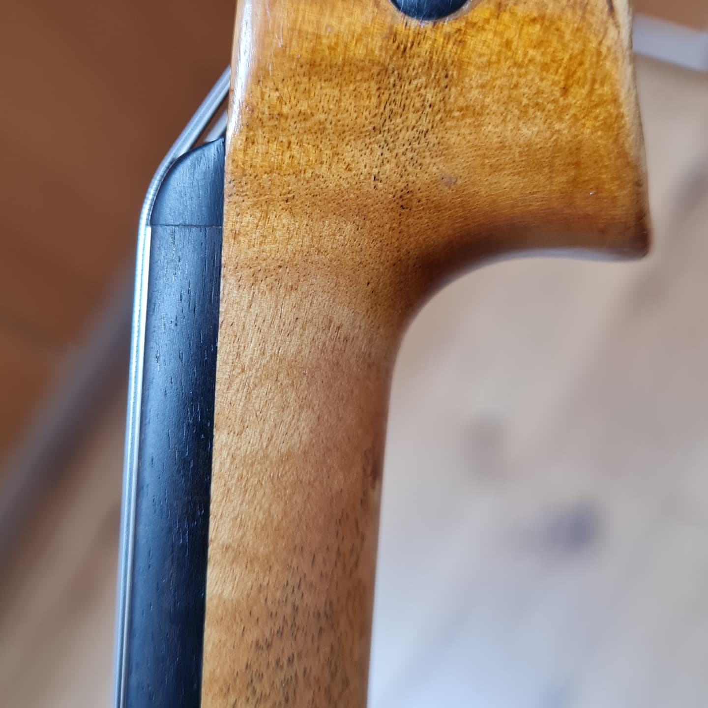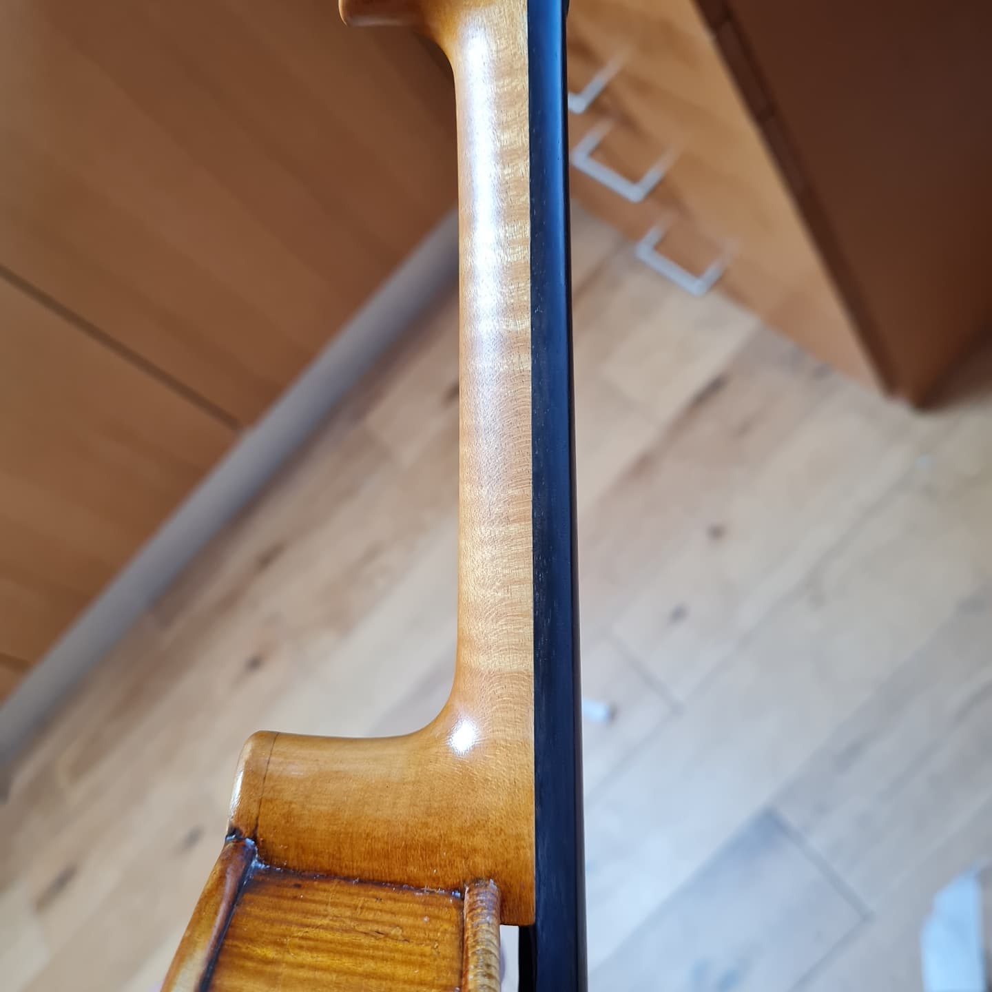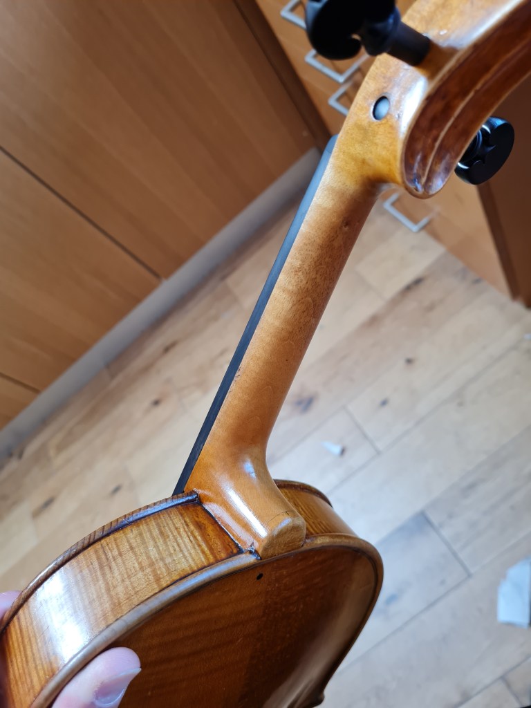 Even though this viola has its original neck, it was so bulky that it needed re-shaping, re-staining and retouching.