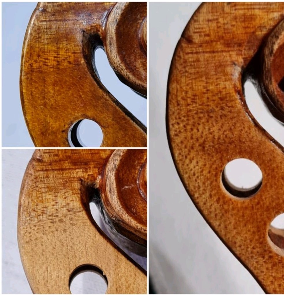 These are a few examples of showing the importance of getting the staining of the new wood right before the area is sealed with clear varnish and retouched.