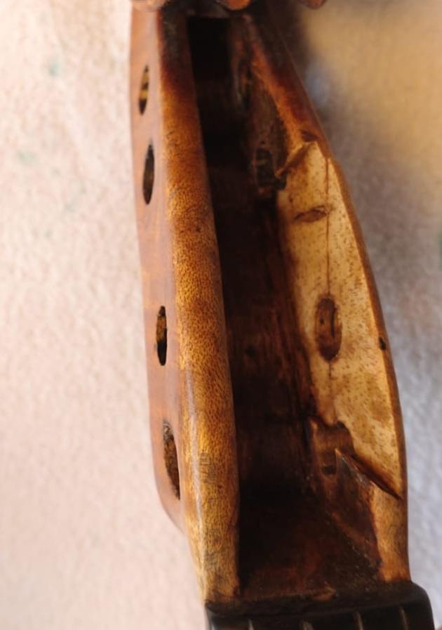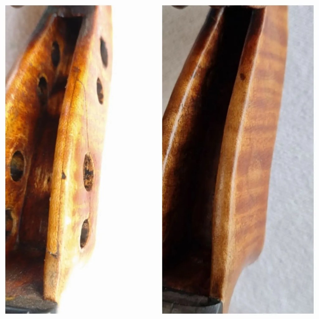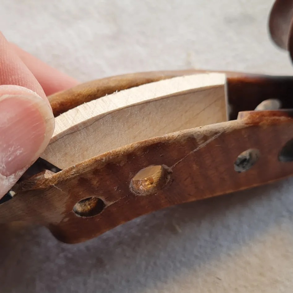 A follow-up from yesterday’s post to show how I secured the crack in the pegbox.