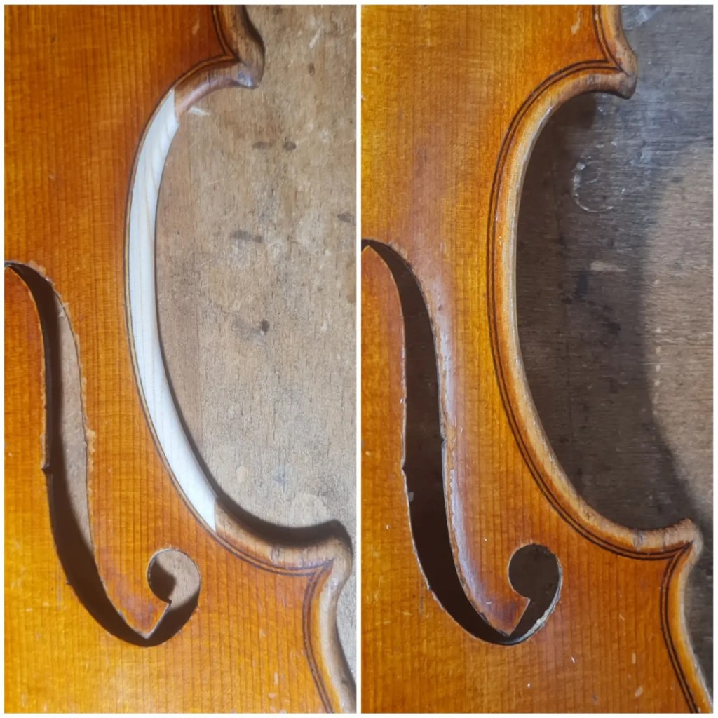 The photos show some before and after shots of what we achieved this week. I got utterly defeated by a dented guitar top and won’t allow guitars on my courses in future! 😆