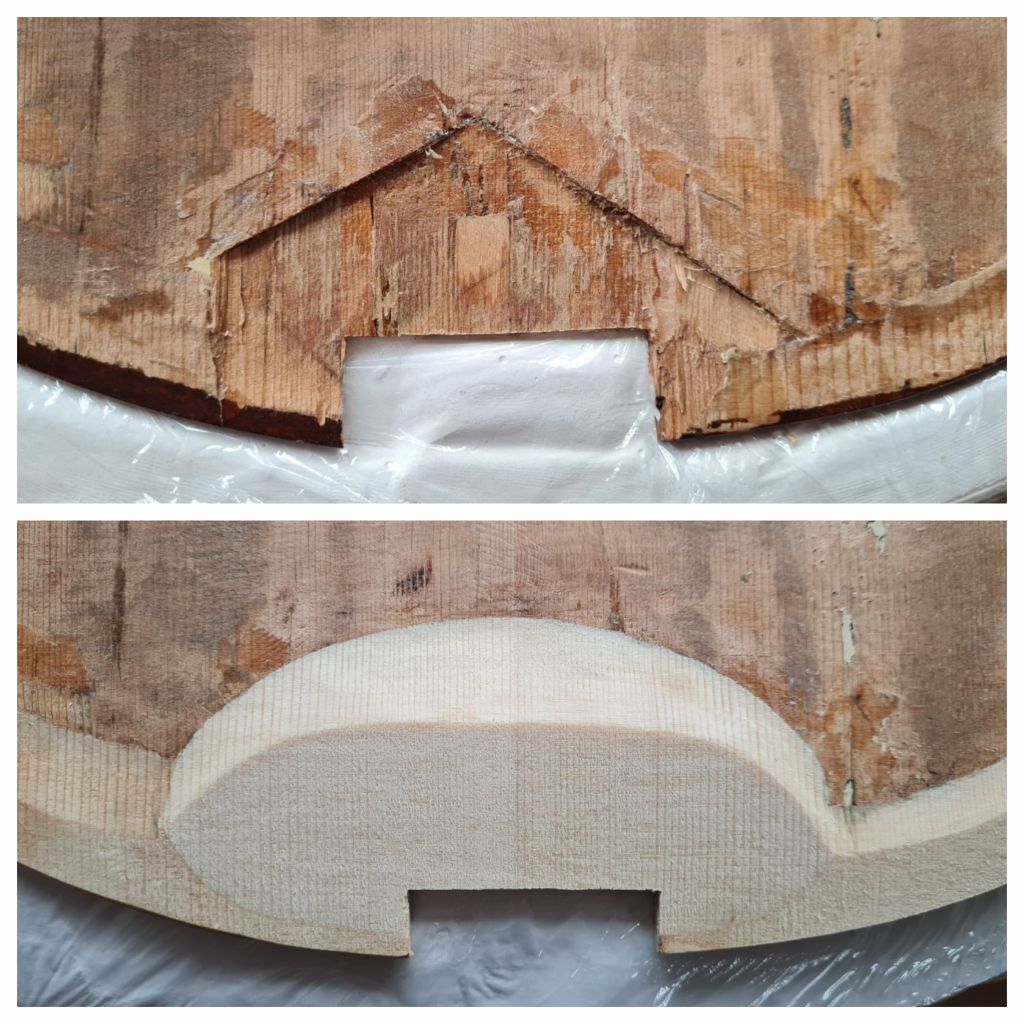 Final adjustments of the patch will be made once the front goes back onto the ribstructure.