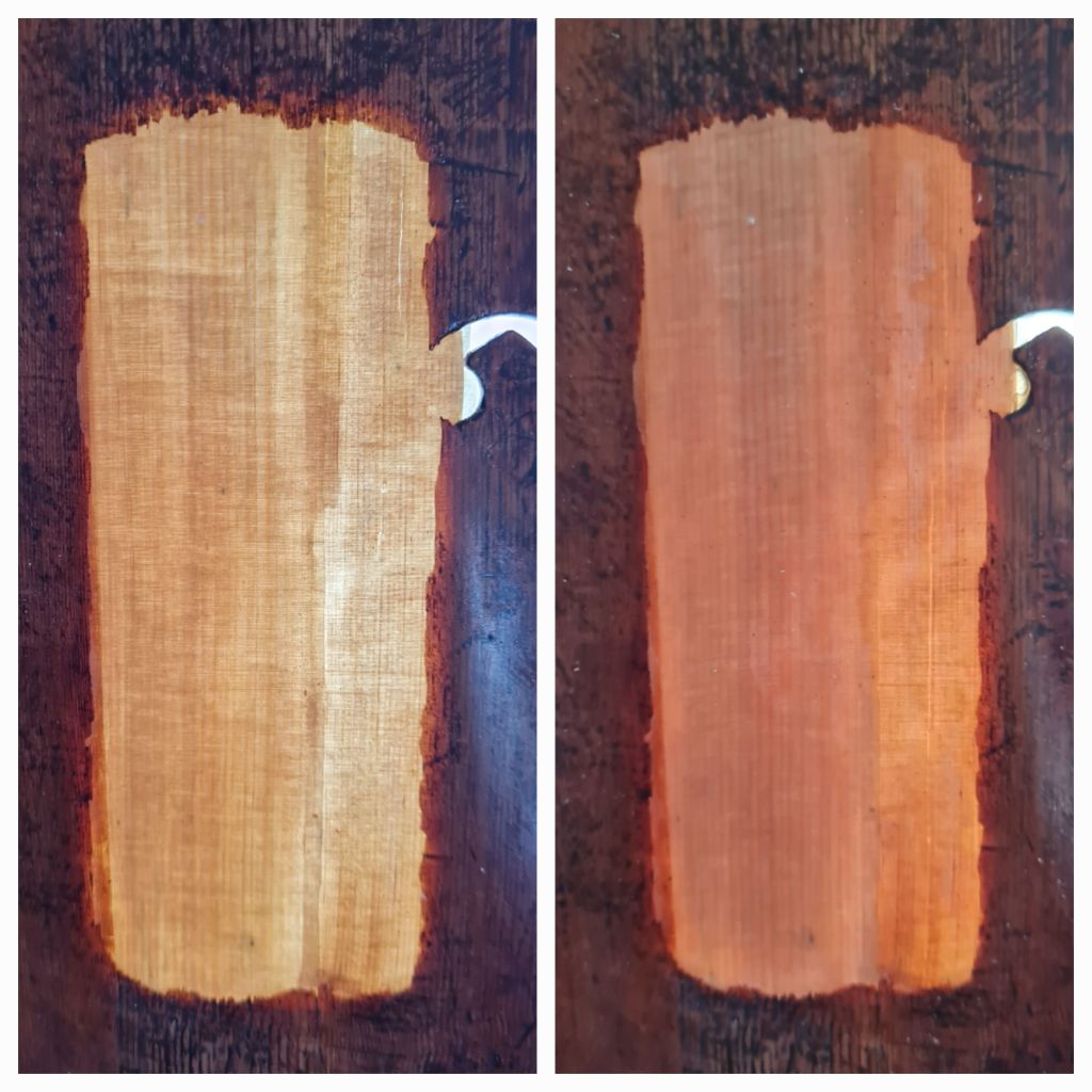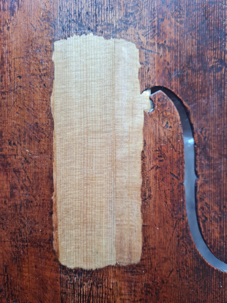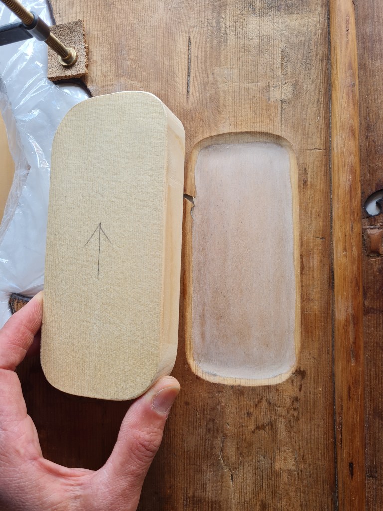 Therefore I always back up the area with another pine slab-cut shaving to stabilise it and to be able to make the patch bed more even to ease the fitting of the patch afterwards.
