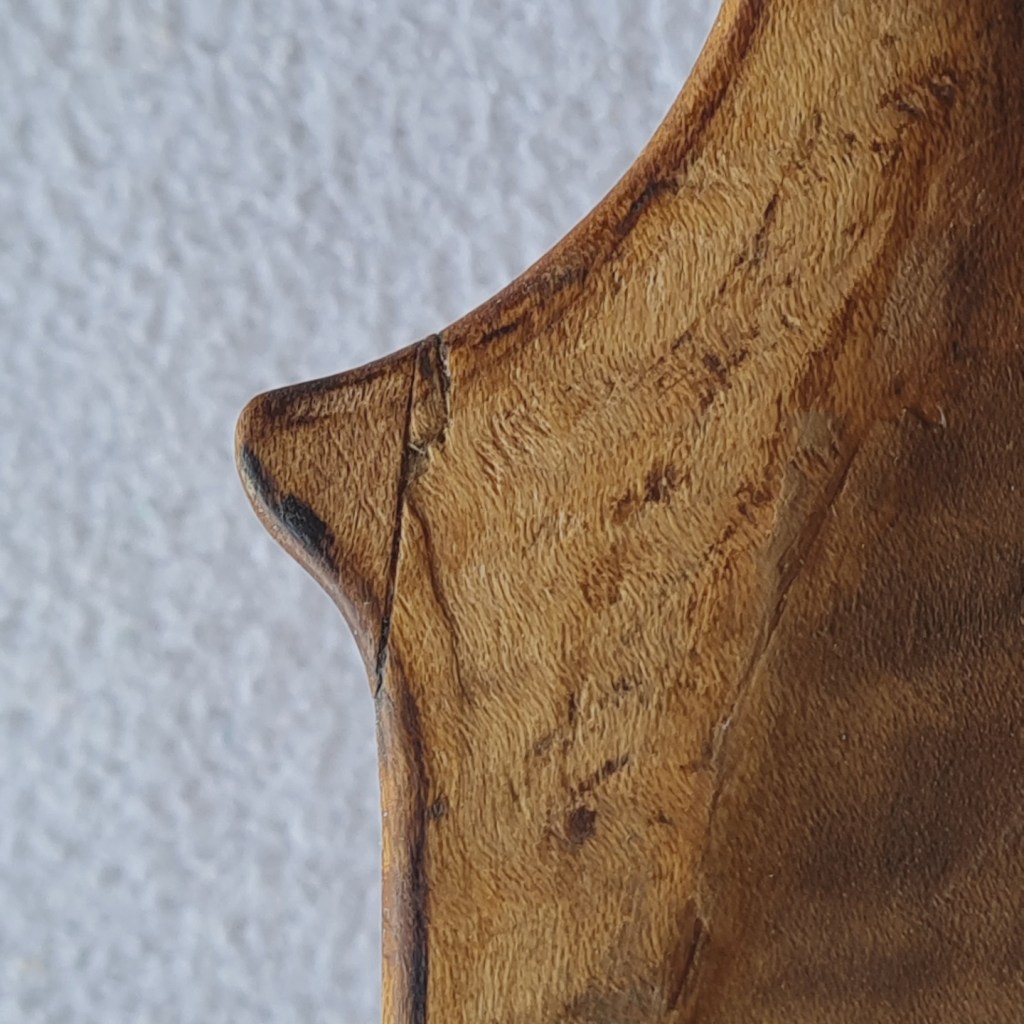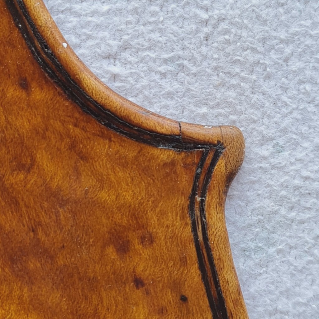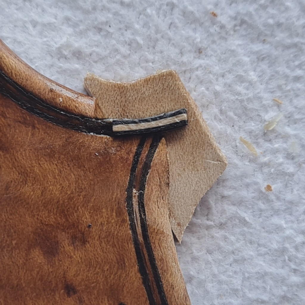 Removal of the old repair first and reconstruction of the platform, purfling and edges with a full cap at the end