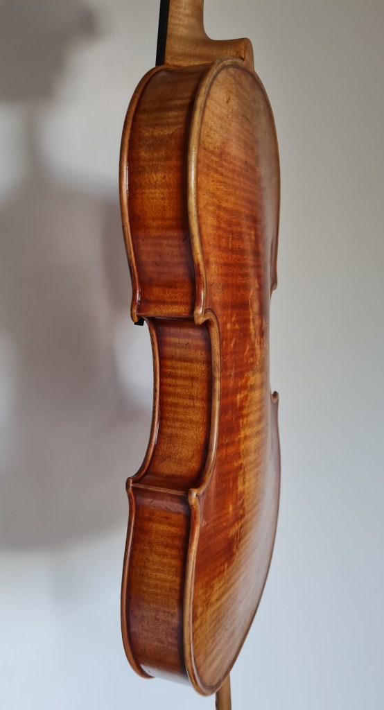 The antiquing on Tony’s Strad-based violin is getting there and I’ve enjoyed the process a lot more this time round. The back needs a bit more work and some retouching on the heel to be done, then the set-up. Can’t wait to hear what it sounds like! 😃