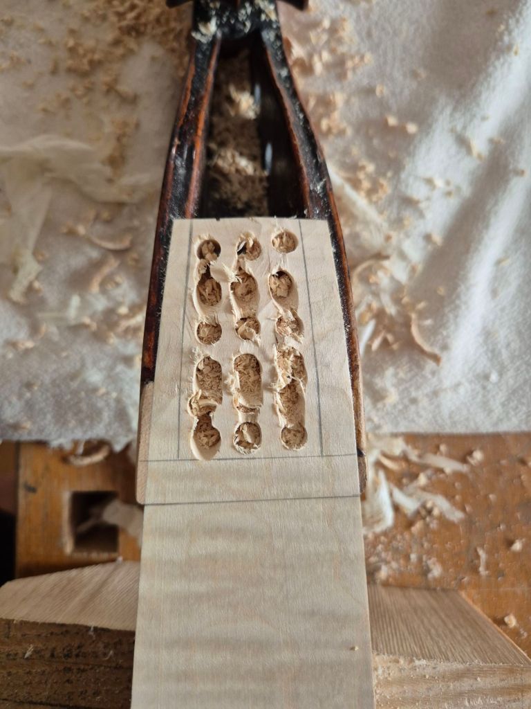 There is so much work in a cello neckgraft! My Beare’s sheet tells me it should take around 70 hours all in. With the added work of the scooped pegbox walls along the top and the woodworm to deal with, it took me an extra 5 hours…
