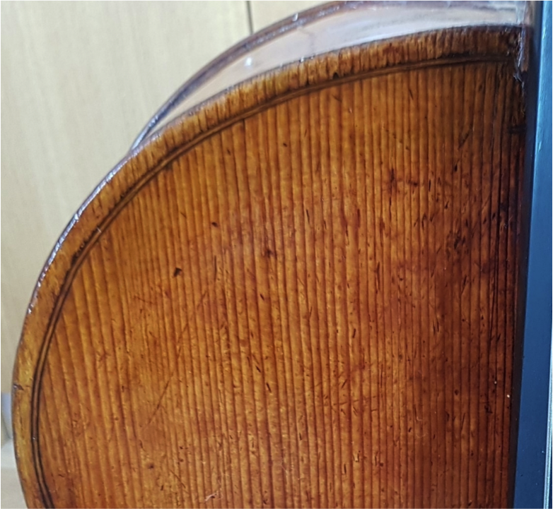 In recent years, I seem to be spending more and more time enhancing the look of an instrument from the outside with minimum intervention. It is usually a matter of improving on previously applied retouch and cleaning out surface dirt in cracks, which are level and securely glued. Once they have been cleaned, I can then adjust the texture and retouch over the cracks.