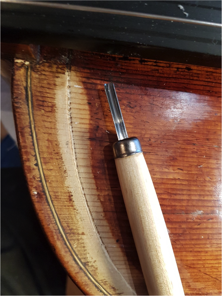 Any woodwork procedure we carry out on instruments, whether it is taking a front off, opening up a crack or replacing previous repairs, often inevitably involves losing some wood fibres or small splinters, or cutting further into the original wood to better a previous repair. In many cases, this is a necessity to structurally secure the instrument, but it is always worth asking the question of whether the particular area could be improved upon with minimum intervention to preserve as much of the original wood as possible.