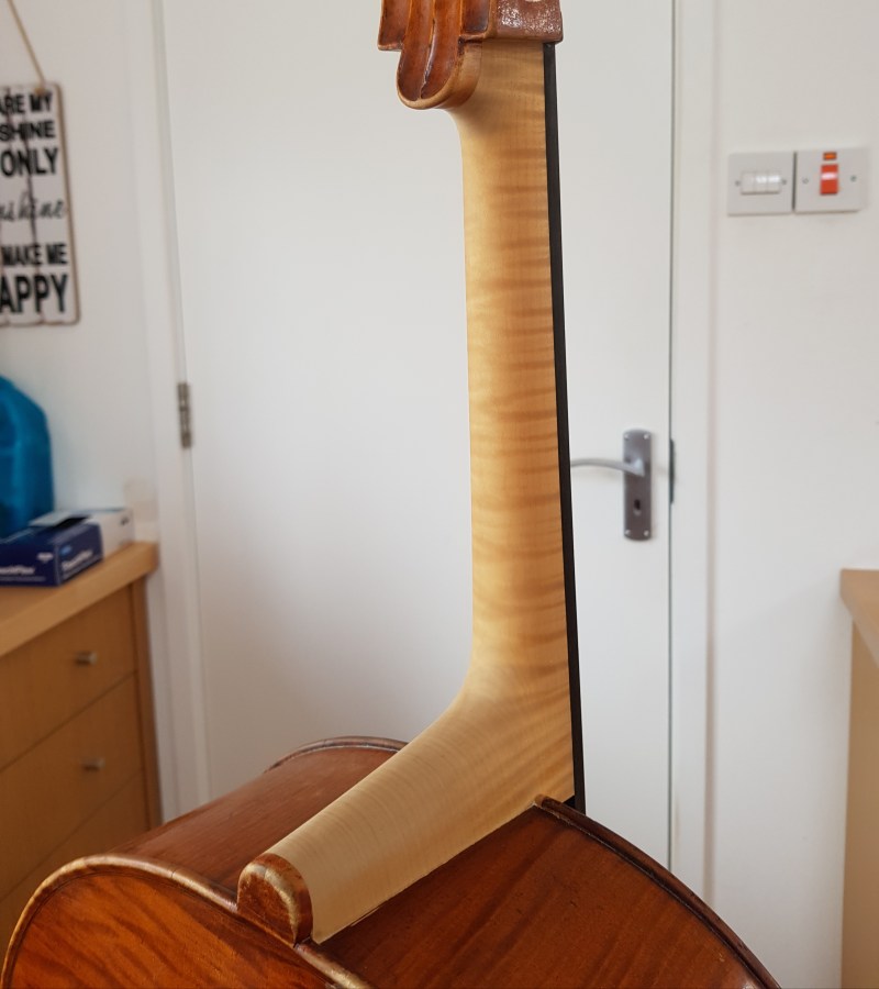 CELLO NECK GRAFT Staining & Retouching of a Cello Neckgraft blending new into old ยฉ Iris carr restorations 2020 Disclaimer company information credits