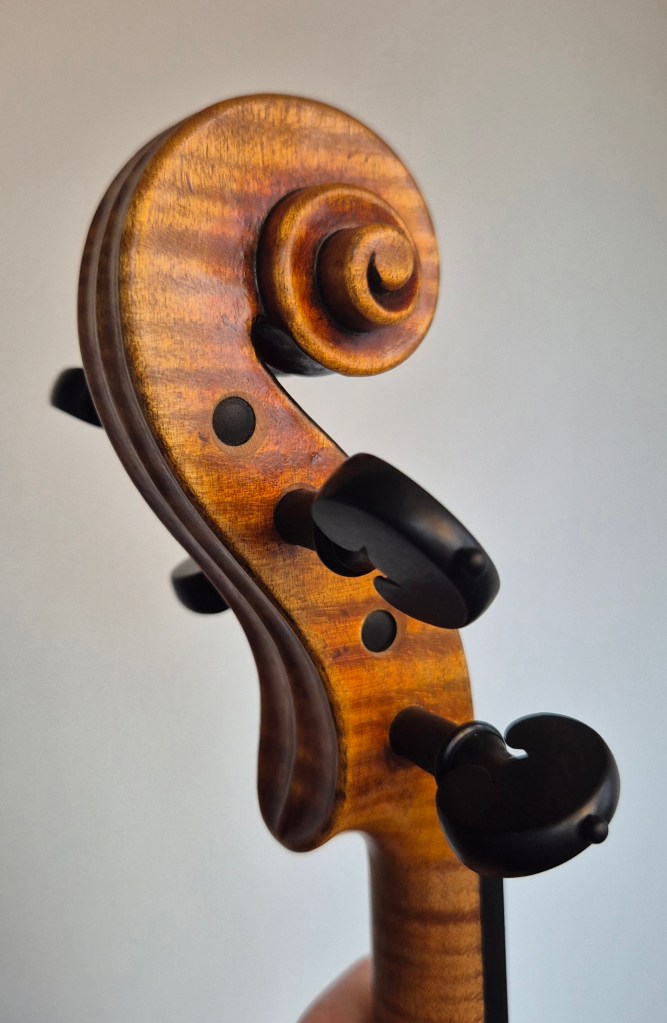 It’s only in recent years Iris has come back to doing some making, using her extensive experience in seeing and working on many of the best Cremonese instruments. Iris now works on collaborations with her husband who makes and varnishes the instruments and Iris then takes over to do the antiquing as well as the set-up. Their instruments are available directly from their workshop in Suffolk as well as London Violindealers Sean Bishop and My Luthier.