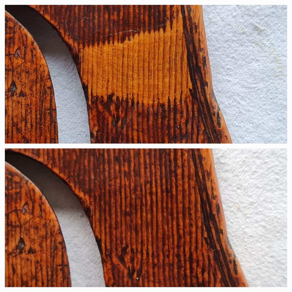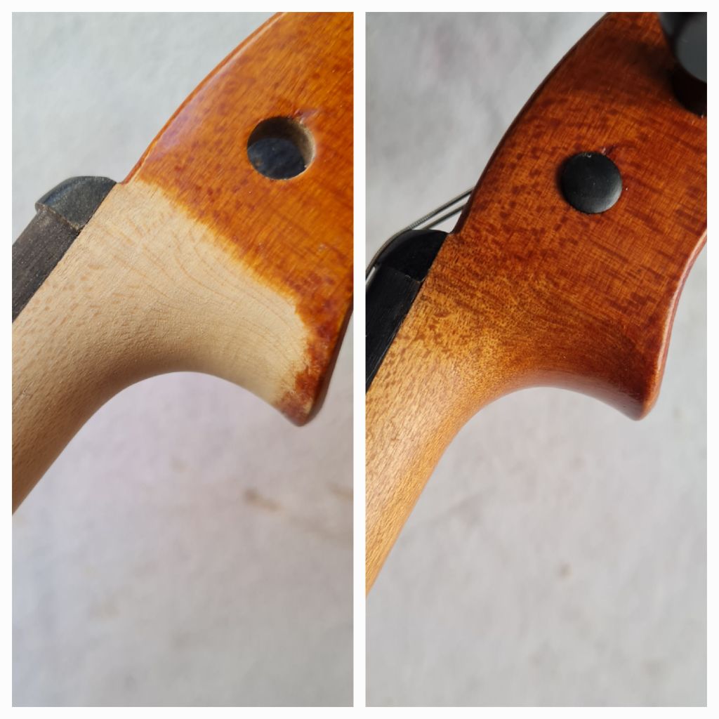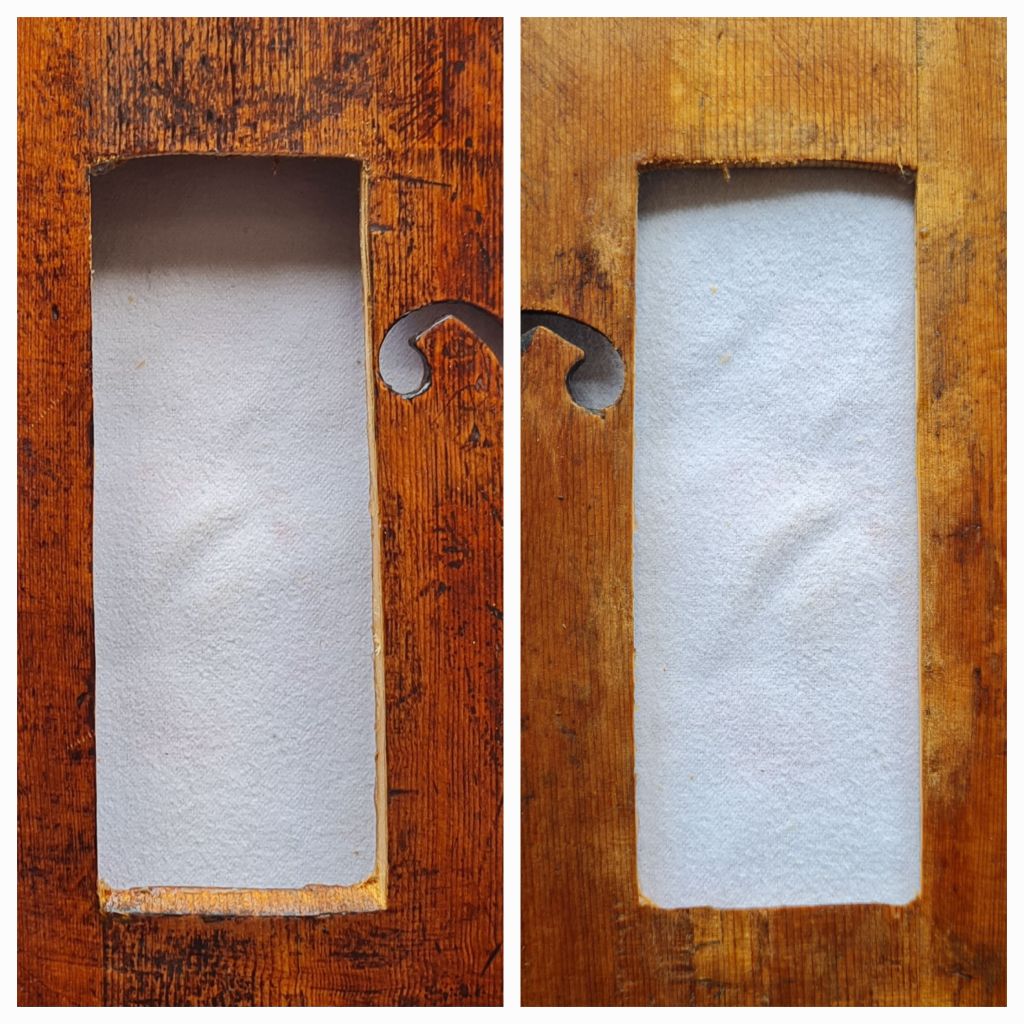 A bit of cosmetic work on this area of a front that had an unusual amount of little chips out of the varnish and my client wanted me to deal with.